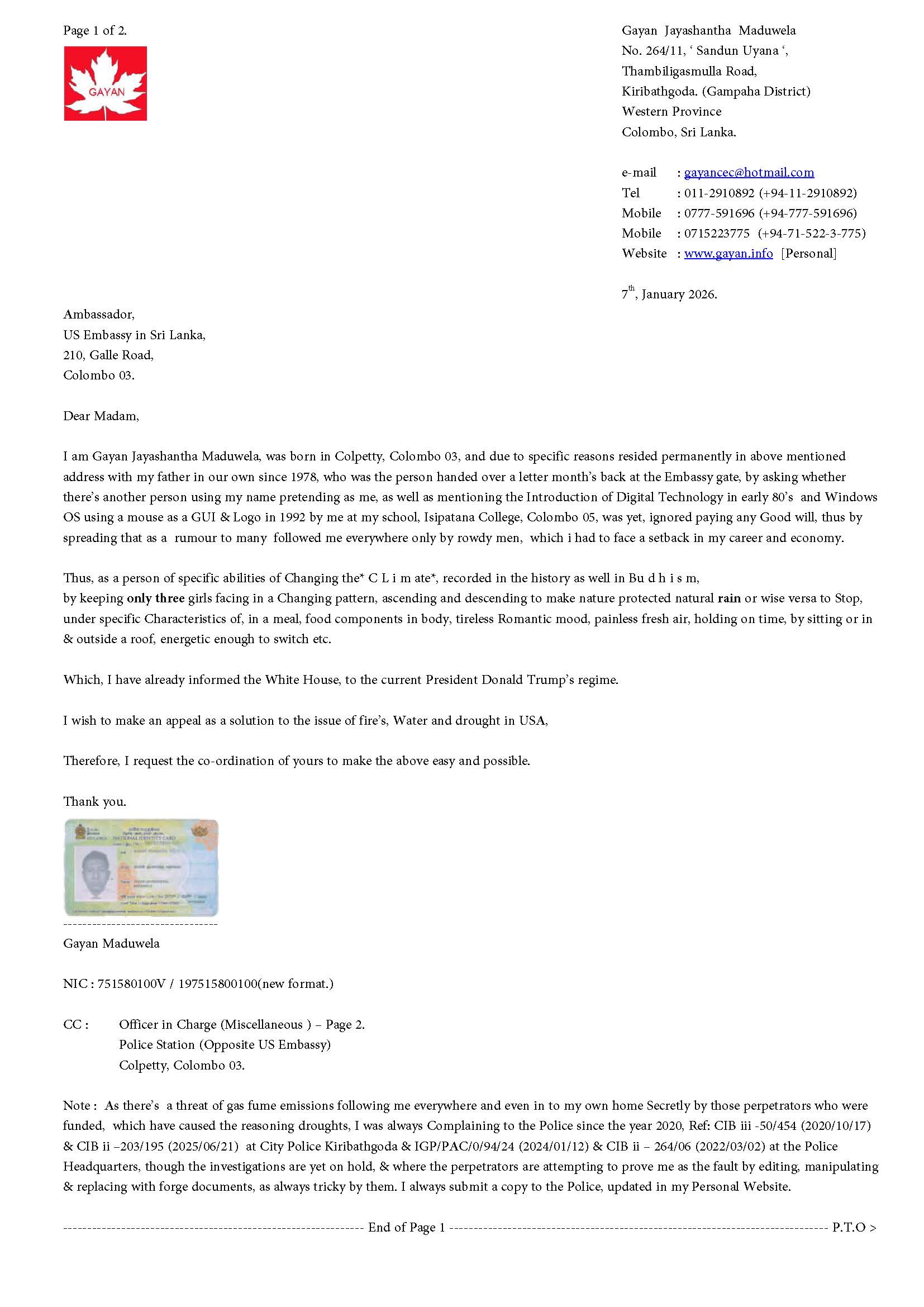 Let me feedback... i let you feedback, to me ....y A conversation .... To meet the Social well being ... Thank you ... Go back to Content Page Click here NEWS Update Story so far .... Click here Police Complaint ... Click here My work on resolution ... Click here About Me About Me Click here Qualifications Click here My Photos Click here My Family Photos Click here Contact Me Click here ---------------------------------------------------------------------------------------------------- www.gayan.info - Web Page/ site handle by me Personally, as a hobby. Gayan Jayashantha Maduwela. NB: if someone unknown, happens to be hacked and modify, irrelevant may remove ASAP once i noticed. as my Passwords could reach free over the mind. [[[ P L ease let me know if so ... ]]] Note - Reason why ??? The Mad Bugs already destroying, editing false, manipulating, deleting evidence and... h i s to r y ///??? Thus, better runout them. ------------------------------------+++End of the Page+++-----------------------------------------------